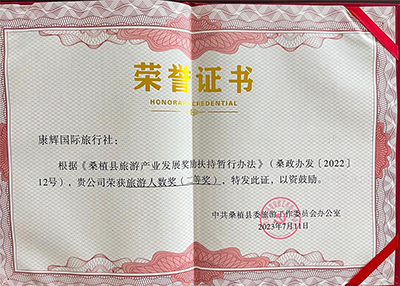 近年來(lái)康輝旅行社獲取的相關(guān)榮譽(yù),僅少部份參考: